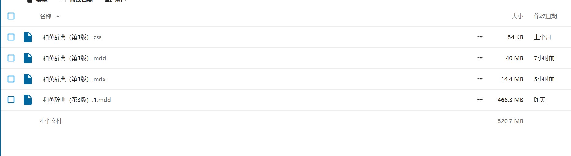 四个文件在同一个文件夹里呀,应该除了这个四个文件外还缺字体文件吧。dicttango2.3.3.0