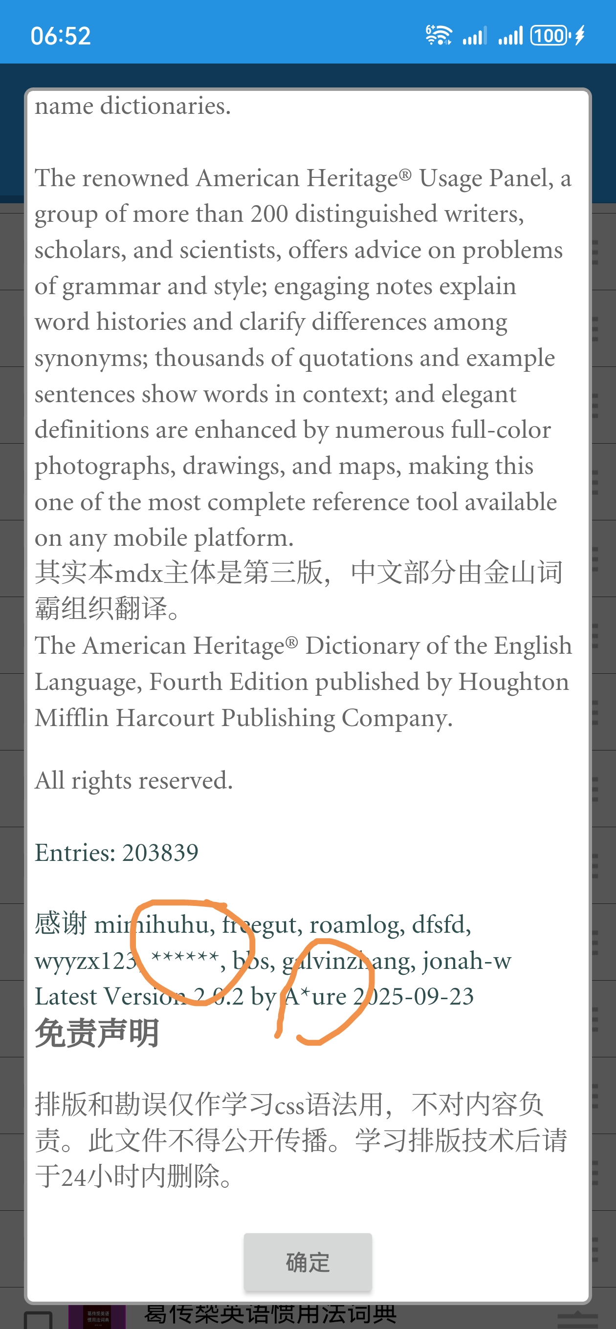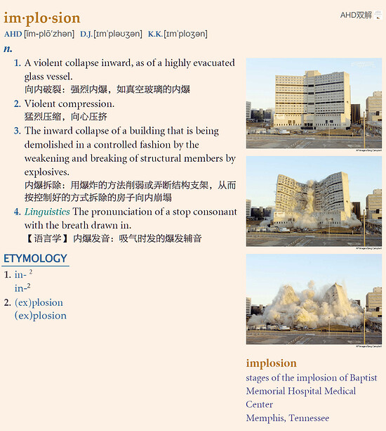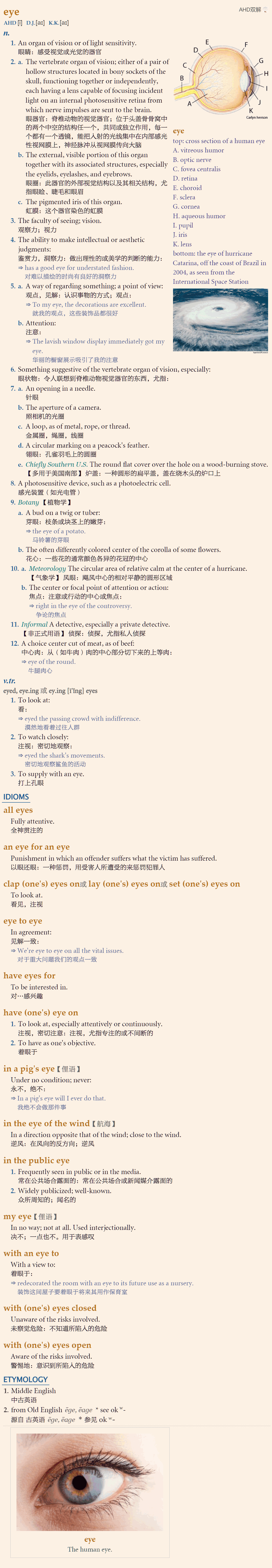 评论:这是我平时列表里实际常用的词典,有时候就跟O4一样,其他词典都未解释清楚,忽然看见AHD的释义豁然开朗。