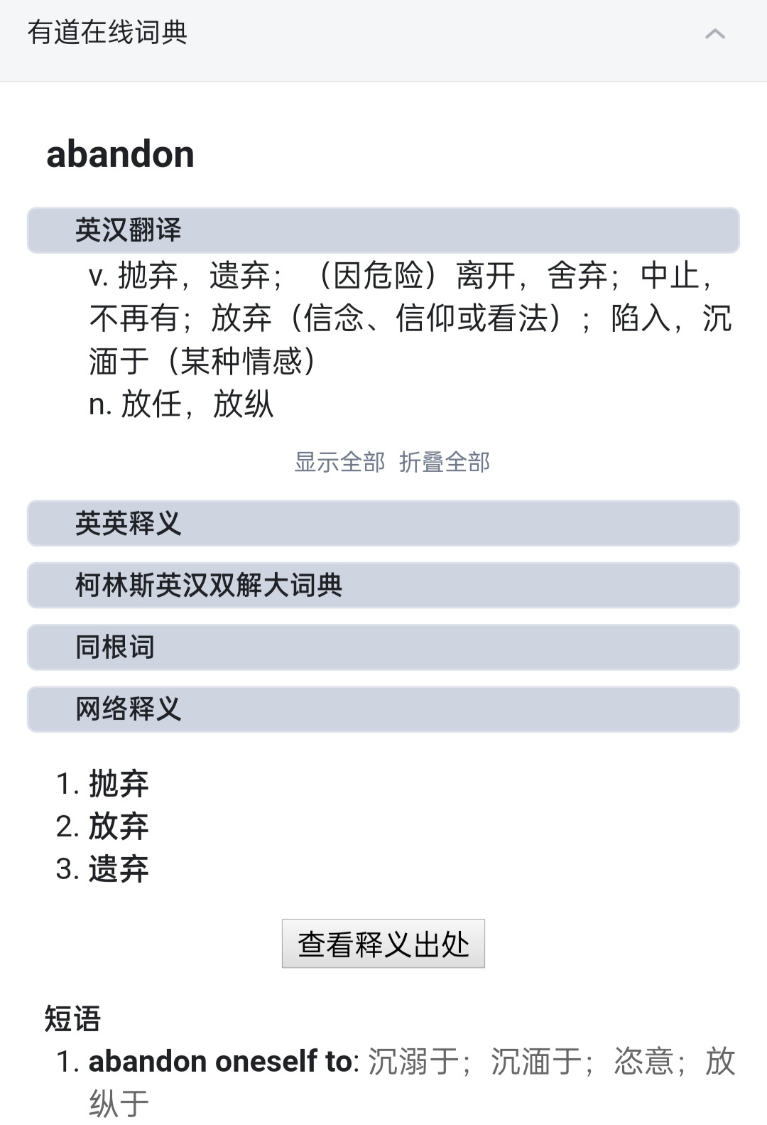 想求助一下各位大佬,我该如何改有道在线词典的是否“默认展开”和各小板块的顺序,我想只默认展开“英汉翻译”和“同根词”,并把这两个板块提前,有办法实现吗