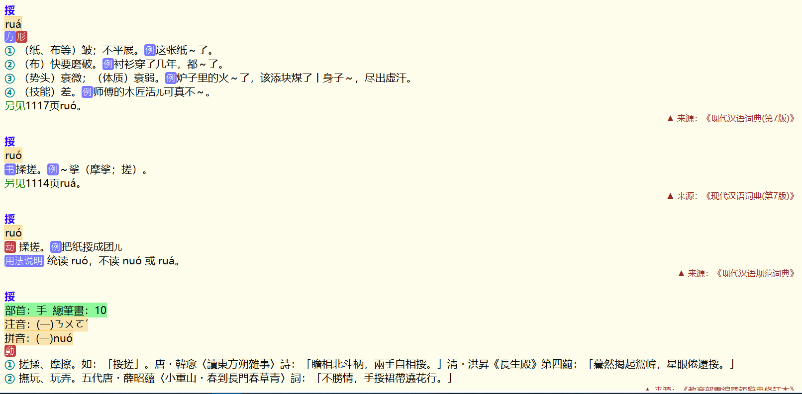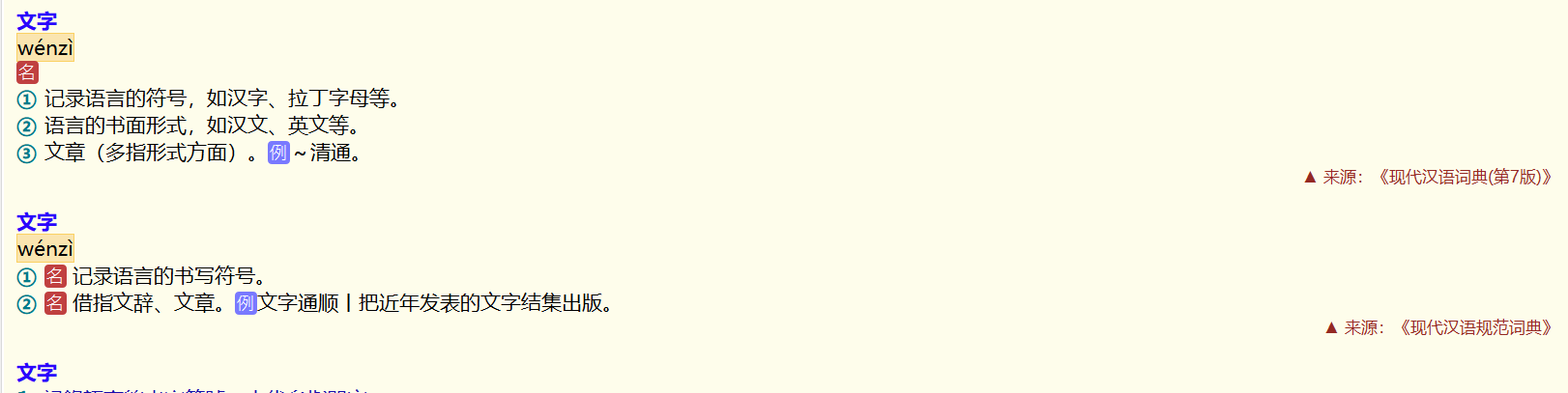 这就是我之前做的,这个还是个挺老的版本呢,css我后来都改过了好几次了。下面标注那个“来源”,是因为我把好几个词典做在了一起:
